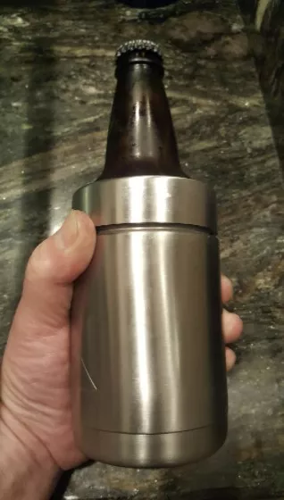 This stainless coolie cup will keep a can of anything cold for several hours! I'm not exaggerating. I left a cold can in one out overnight, and the next day it was still cold. It will maintain nearly the same temperature as the can was when pulled from it's cooler or fridge for well over an hour. After that it super slowly loses its cold. It would take literally hours to reach room temperature. I am amazed at how well this works.